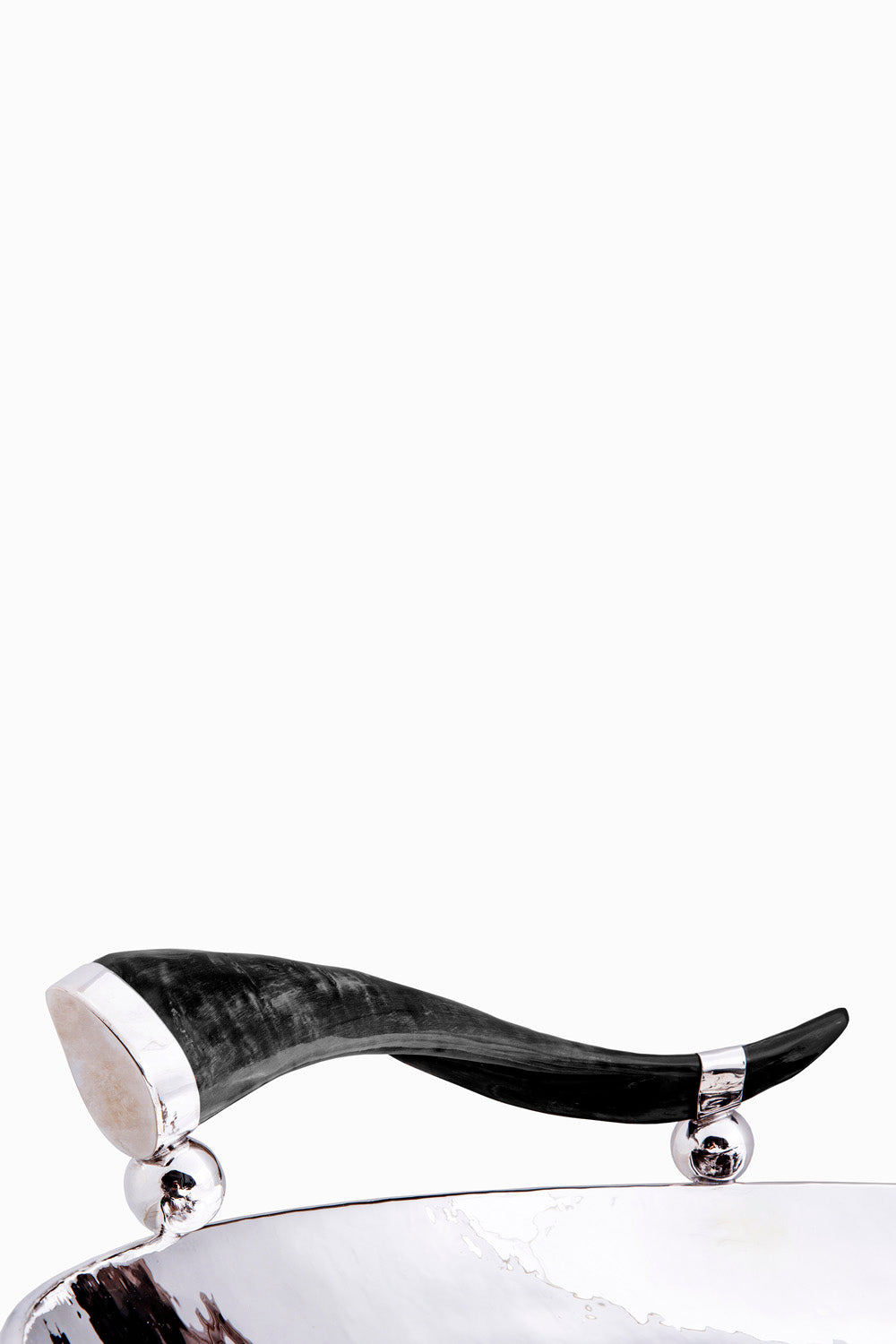Olivos Big Round Centerpiece, Black Horn, Polished Silver
